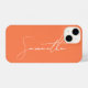 A modern coral pink orange phone case design with customised signature script monogram. A perfect gift for anyone who loves phone accessories, modern designs etc. Customise it and make it your own.