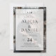 Elegant minimalist trendy monogrammed two photos wedding invitation featuring a modern contemporary white and black bold typography names opaque overlay. ++++++++++ Easy to personalize with your details, monogram name initials, and photos on the front and back. ++++++++++ It is suitable for any season chic contemporary formal weddings. +++++++++++++ Colors of typography, frame, and background can be changed to match your wedding color palette.