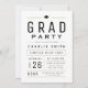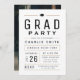 Modern and minimal typography fun graduation party invitation in black, gold and white, Custom it with your own text and party information.