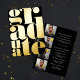 This modern and sleek graduation invitation is perfect for any graduate. It features gold typography in real shiny gold foil and four photos of the graduate on the back. The colour scheme includes black, white, and gold. It's elegant, minimal, simple, contemporary, and cool, a design that will surely impress your friends and family.
