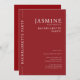 Introducing a sleek and sophisticated bachelorette party invitation design, perfect for a bride seeking a modern touch. This template features a bold red background that exudes elegance and style. with the brides name are prominently displayed in a classic white serif font, adding a timeless charm to the design. also a beautiful photo can be added to the back of the invite.