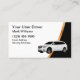 Ride hailing automotive business cards for an Uber driver or car service with image of a modern SUV vehicle in the background and simple text layout you can replace to make this your own. Works for a taxicab driver, Uber independent courier, or car service.