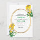 The invitation features a golden oval frame decorated with cheerful yellow flowers and gorgeous italic writing