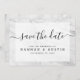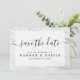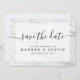 Modern Simple Black and White Elegant Wedding Save the Date. Personalise script typography with your details. Features minimalist marble pattern background.