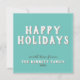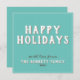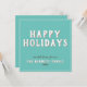 Modern Simple White Typography Happy Holidays Card. The design has a turquoise background and modern white and grey typography - you can customise all the text.