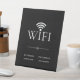 Make Wifi access easy and stylish with this White Wifi Password Pedestal Sign in black background. Perfect for Airbnb hosts, vacation rentals, guest rooms, cafés, salon, studio and offices, this minimalist Wi-Fi wall sign helps guests connect quickly.