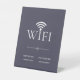 Make Wifi access easy and stylish with this White Wifi Password Pedestal Sign in dark gray background. Perfect for Airbnb hosts, vacation rentals, guest rooms, cafés, salon, studio and offices, this minimalist Wi-Fi wall sign helps guests connect quickly.