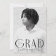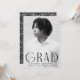 Make your celebration unforgettable with these simple yet stylish graduation party invitations, featuring the graduate's vertical photo and "Grad" in bold black, modern art deco lettering. Personalise the front with the graduate's name, school, and graduation year for a unique touch. The back of the invitation showcases your party details against a chic black and white geometric swirl background, adding a contemporary flair to the design. Perfect for both high school and college graduates, these invitations offer a sophisticated and personal way to invite guests to your graduation party.