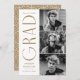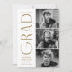 Stylish graduation announcement featuring the graduate's three photos located to the right of the design in a vertical layout. "Grad" is displayed in brass, modern art deco lettering. Personalise the modern photo graduation announcement by adding the graduate's name, graduation year, and school name. The design reverses to display a brass and white geometric swirl background. Perfect for both high school and college graduations!