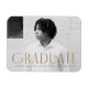 Modern graduation magnet featuring the graduate's horizontal photo with "Graduate" displayed in brass/antique gold art deco-style lettering. Personalize the graduation photo magnets by adding the graduate's name, school name, and graduation year.