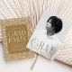 Celebrate the graduate with these elegant graduation party invitations, featuring the graduate's vertical photo and "Grad" in antique gold/brass, modern art deco lettering. Personalise the front of the invite with the graduate's name, school, and graduation year for a unique, memorable design. The back of the invitation showcases your party details set against a sophisticated brass and white geometric swirl background. Perfect for both high school and college graduates, these stylish invites add a touch of class to any graduation celebration.