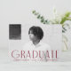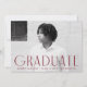 Simple graduation party invites featuring the graduate's horizontal photo with "Graduate" displayed in burgundy, modern art deco lettering. Personalise the front of the photo graduation party invite by adding the graduate's name, school, and grad year. The invite reverses to display your party details with a burgundy and white geometric swirl background.