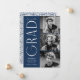 Stylish graduation announcement featuring the graduate's three photos located to the right of the design in a vertical layout. "Grad" is displayed in white, modern art deco lettering with a navy background. Personalize the modern photo graduation announcement by adding the graduate's name, graduation year, and school name. The design reverses to display a navy and white geometric swirl background. Perfect for both high school and college graduations!