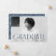 Announce your graduate’s achievement in style with this modern navy graduation announcement featuring a full-bleed horizontal photo and "Graduate" in bold art deco lettering. Personalise this elegant single-photo design with the graduate’s name, school, and graduation year for a unique and professional touch. The back showcases a sophisticated navy and white geometric swirl pattern, adding a contemporary flair. Perfect for high school and college graduates, this customisable announcement is a memorable way to share your graduate’s big accomplishment with family and friends.