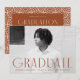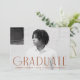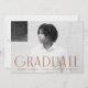 Simple graduation party invites featuring the graduate's horizontal photo with "Graduate" displayed in rust brown, modern art deco lettering. Personalise the front of the photo graduation party invite by adding the graduate's name, school, and grad year. The invite reverses to display your party details with a rust and white geometric swirl background.