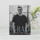 Celebrate your graduate’s accomplishment with this elegant and simple graduation announcement. Featuring the graduate's vertical photo, the word "Grad" is displayed in light blue, modern art deco lettering, giving the design a fresh and stylish touch. Personalize the announcement with the graduate's name, school, and graduation year to make it uniquely theirs. The reverse side showcases a sky blue and white geometric swirl design, adding an extra layer of sophistication. This customizable photo graduation announcement is perfect for high school and college graduates and is a great way to share their special milestone with family and friends.