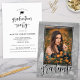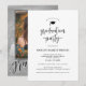 This graduation party invitation is perfect for the high school or college graduate looking for a simple black and white modern script invite with a full photo on the back that gives the illusion of two portraits. Personalise your with all grad party details, class of info and add a favourite graduation photo session portrait. Designed by Simple Desert Designs Studios for Zazzle. Message us for customisation of this or any of our designs to fit your needs.