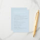 The Aesthetic: Provide your guests with essential information in a fresh, sophisticated style with this modern sky blue enclosure card. This "information hub" utilizes a bold, architectural layout and our signature tonal typography to organize your wedding specifics into clean, sophisticated blocks. The airy sky blue background acts as a gallery-style canvas, ensuring your details are as beautiful as they are functional. Industrial Clarity & Design: This card is engineered for maximum organization. We’ve pre-set the information into three distinct sections: Accommodations, Reception, and Wedding Website. To maintain the "industrial-chic" hierarchy, we recommend entering your details in all caps for the first two sections; then, use lowercase for your wedding website to create a visual contrast that helps the URL stand out for your guests. The L & G Monogram: This fully customizable template features a sophisticated "L & G" monogram on the back, serving as a high-end "brand mark" for your wedding suite. This designer touch ensures your stationery looks cohesive and professional from every angle. Personalization & Quality: Easily update each block while maintaining the perfectly balanced editorial grid. For a premium, non-reflective finish that enhances the light tones of the design, I highly recommend our Matte paper stock—its heavy-weight, high-quality feel is the perfect match for the "Signature Palette" aesthetic. A Designer’s Pro-Tip: This enclosure card is designed to sit perfectly behind your invitation and RSVP card. By keeping your secondary details on this dedicated sky blue card, you allow your main invitation to remain a clean work of art while adding a serene layer of color to your suite.