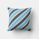 This square pillow features a beautiful diagonal striped pattern in sky blue, dark grey, and white.