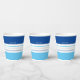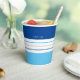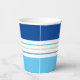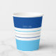 These modern paper cups feature a colourful pattern with blue and white stripes. Personalise it with your name at the top. Customise the colour scheme by clicking Customise further.