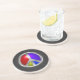 Modern Sleek Metallic Peace Sign coaster. Colorful Modern Red, blue, yellow, and purple metallic peace sign on top of black metallic pattern background.