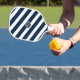 Modern Sleek Nautical Navy Blue and White Striped Pickleball Paddle