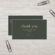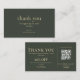 A modern small business thank you discount card featuring a dark olive green layout with a QR review section, thank you message, discount offer, and coupon code. Perfect for packaging inserts, order thank you cards, and customer appreciation. This editable design helps encourage repeat purchases, strengthen customer loyalty, and create a polished branded unboxing experience.