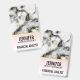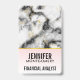Name badge with an elegant and modern marbled pattern. White, black and smoky grey marble with thin ribbons of faux-gold swirls throughout the pattern. A light pink gradient background beneath the marbled pattern.