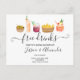 Casual cool save the date, free drinks, and we're getting married too! with this pastel hand painted fruity cocktails, olives and crisps illustrations.