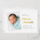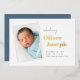 Fresh and modern birth announcement cards feature a vertical photo with a white snapshot border, placed diagonally with your baby's name in gold foil alongside. Baby's birth stats and your family signature complete the design. Add three additional photos to the back.