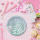 Paper Party Plates | Modern Snow Tree CHANGE COLOR - Modern but Retro at the same time.. change the colour of the Teal Christmas tree/s under the snow and the trees in the background to any colour of your choosing! Use the Customise button and highlight the proper image to change the fill colour , you can have them any colour/s you like; red, green, pink, purple, blue.. the possibilities are endless! Modern font " 'Let it Snow " and a place to add a name if you like or delete one or both of the text options. - all on a snowy landscape background. Have a blast and make it your own! Design by ©WhimsicalArtwork™