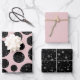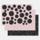 Modern Snowflake Black Pink Pattern Christmas Wrapping Paper Sheets. Snowflakes in circles on pink background. Beautiful white snowflakes in different sizes and shapes on black background.