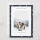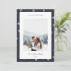 Share holiday greetings with these photo Christmas cards featuring your favourite photo set on a modern and minimal background of white snowflakes on contrasting midnight blue. An editable message area lets you customise your holiday greeting in modern lettering. Add your family name or names beneath.