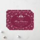 Elegant claret and white holiday card featuring reindeer and winter greenery inside a snowflake frame. A beautiful script font is used to add more festive look to this greeting card. Easily personalise this non photo holiday card online.