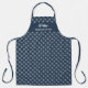 Midnight blue personalised Christmas apron for him with small Scandinavian-style snowflake design, featuring a custom name in modern script font and "Santa's Team" text example in a sans-serif typeface. The apron's background colour can be changed at the design level. This stylish apron is easy to customise and makes a great gift idea for men for Christmas or winter season birthdays © y.BEE PAPERIE.