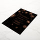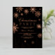 A modern winter Holiday Christmas real rose gold foil snowflakes illustration on editable black background, with pine tree branches on black background with an elegant script typography.