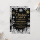 This elegant Christmas Party invitation features a black background adorned with intricate white and golden snowflakes. Sparkling frosted pine branches line the bottom, adding a wintery charm. The design creates a festive yet sophisticated feel, perfect for a holiday celebration.