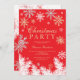 A modern winter Holiday Christmas gold glitter, silver and white snowflakes illustration on editable red background, all the illustrations colour are editable to match your own colour palette with white pine tree branches on navy blue background with an elegant script typography.