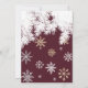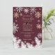 A modern winter Christmas red burgundy and gold glitter, silver and white snowflakes illustration on editable green background, all the illustrations colour are editable to match your own colour palette with white pine tree branches on red background with an elegant script typography.
