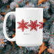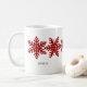 Simple modern Christmas Holiday coffee mug featuring a row of solid colour holiday snowflakes. Minimalist typography. Clean simple design. All text areas personalizable. Contact for assistance in personalising or customising to your individual wishes. Happy holidays!