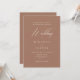 A chic modern wedding invitation featuring a soft mocha brown and Wedding in a script typography. Personalise with all of your important details such as bride and groom's names, wedding date and location.