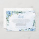 Elevate your wedding stationery with our exquisite modern soft pastel blue flowers and silver details enclosure card. This elegant card features delicate pastel blue flowers that exude a sense of tranquillity and sophistication, perfectly complemented by shimmering silver accents that add a touch of luxury. The combination of soft hues and metallic details creates a modern and stylish look that will impress your guests. Whether used to provide additional information or as a decorative element in your wedding suite, this enclosure card is sure to make a statement. Enhance the overall aesthetic of your wedding with this beautiful and chic design that captures the essence of romance and elegance. Make your special day even more memorable with this stunning enclosure card that reflects your unique style and vision.