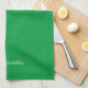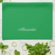 Modern Bright Green Solid coloured background. TEMPLATE for the name in  White script. A Modern kitchen towel featuring an easy-to-personalise template, for the perfect custom kitchen.