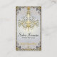 Modern Sophisticated Gold Designer Salon Business Cards featuring a chandelier and silver metal gradients and jewels.. Stand out from the crowd & make a statement with these cards. Customise with your personal information and show off your classy, modern side with these cards. Great for any business, especially salons, spas, and hairstylist cards! Or even vintage furniture shops :) Created and Copyright 2012 Julie Farrell More funky, cute & cool apparel and gifts available at www.zazzle.com/jfarrell12 Happy Shopping. © 2012 | Julie Farrell | All Rights Reserved