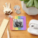 This modern photo key chain has a minimalist style, the design features your favourite photograph, Soulmates in a modern script font and personalised with your names in black text, over a rainbow background. The font styles, sizes and colour can be changed if preferred by clicking on the customise further link after personalisation.