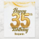 Celebrate 35 in style with this customisable wine label featuring a bold, golden “Happy 35th Birthday” message, accented by a festive gold confetti background for a touch of elegance. Personalise the text to make it truly yours—perfect for gifting, party decor, or keepsakes.