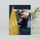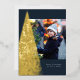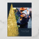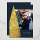 Modern speckle Christmas tree navy one photo Foil Holiday Card