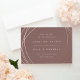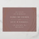 Announce your wedding date and location in chic modern style with these sleek save the date cards featuring abstract yet geometric detailing on an earth toned dark mauve background. Front features your wedding details in minimalist modern lettering, encircled by irregular sphere shapes in elegant rose gold. Add additional details, like your wedding website, to the back.