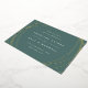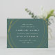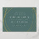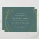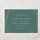 Announce your wedding date and location in chic modern style with these sleek save the date cards featuring abstract yet geometric detailing on a nature inspired beryl green background. Front features your wedding details in minimalist modern lettering, encircled by irregular sphere shapes in elegant rose gold. Add additional details, like your wedding website, to the back.