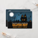 Dressing up in costumes and decorating and transforming your home into a creepy, spooky place is so much fun! Invite your friends over for a night of Halloween party with this cool Halloween party invitation. The stars and the full moon cast its light on the surroundings and leave silhouettes of the cat, bats, trees, tombstones, owl, fence, jack-o'-lantern carved pumpkin and the eerily looking possibly haunted house. A colour palette of black, blue, orange and white which is perfect for Halloween. This is an invite that is going to impress the guests!
